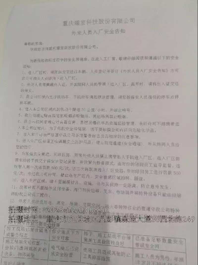 用人单位名称(建设单位) | 重庆臻宝半导体材料有限公司 | ||||